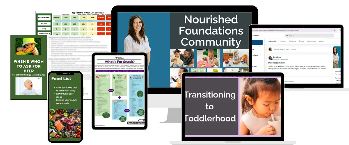 Of course the best time to start building new habits is the VERY beginning, to reduce the chances of having to fix problems later. With the Nourished Foundations Community, Dana is bringing you the ultimate guide and support for starting your baby and family on the best path forward to a successful, healthy, happy life free from strife around food. You are in the most-helpful hands.